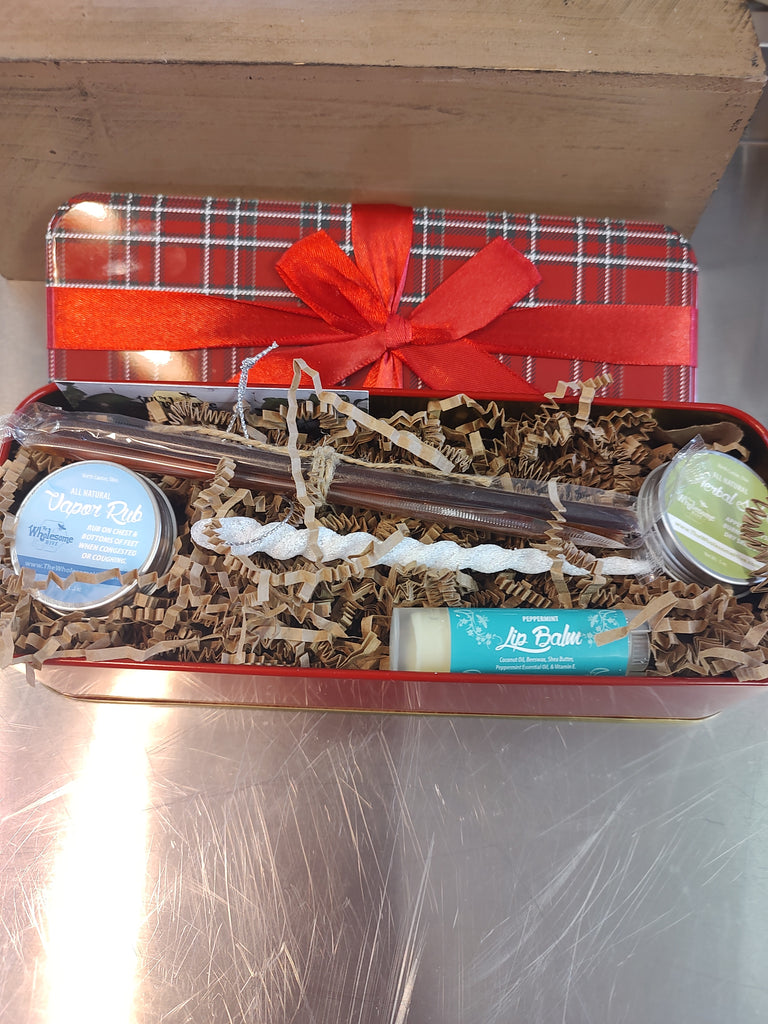 Vapor Rub, herbal salve, lip balm, honey sticks, ornament